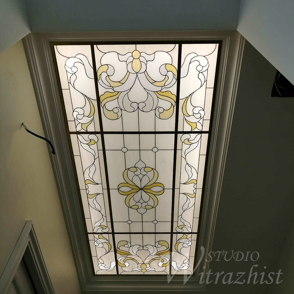 Для крепления витражей к потолку изготавливаем прочные и красивые рамы из латуни и алюминия